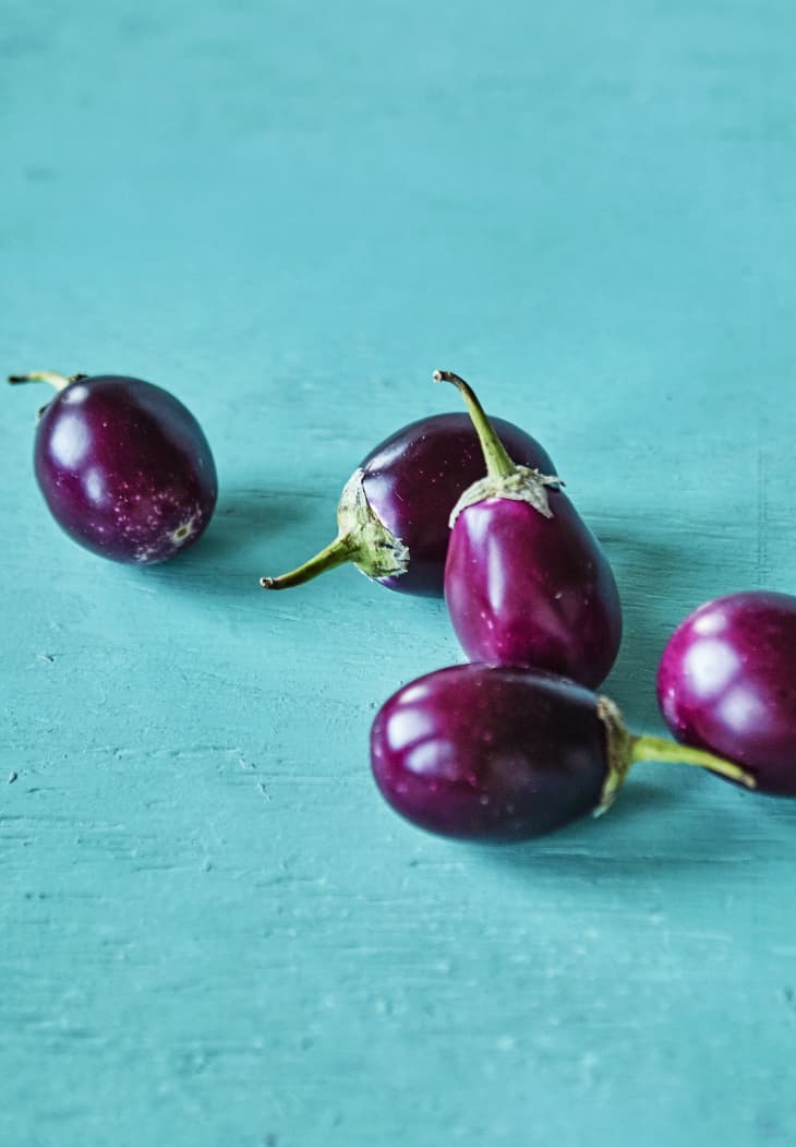 Jade green eggplant with glossy skin, the perfect style and color for indian cooking.